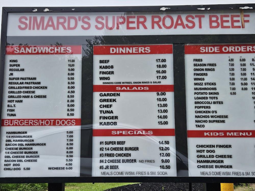 Beyond sandwiches, options like the chili cheese dog and kid-friendly meals satisfy every eater. A variety of sides, such as mozzarella sticks and nachos, create a complete dining experience. Reasonable average prices make it easy for everyone to enjoy a meal at Simard's.